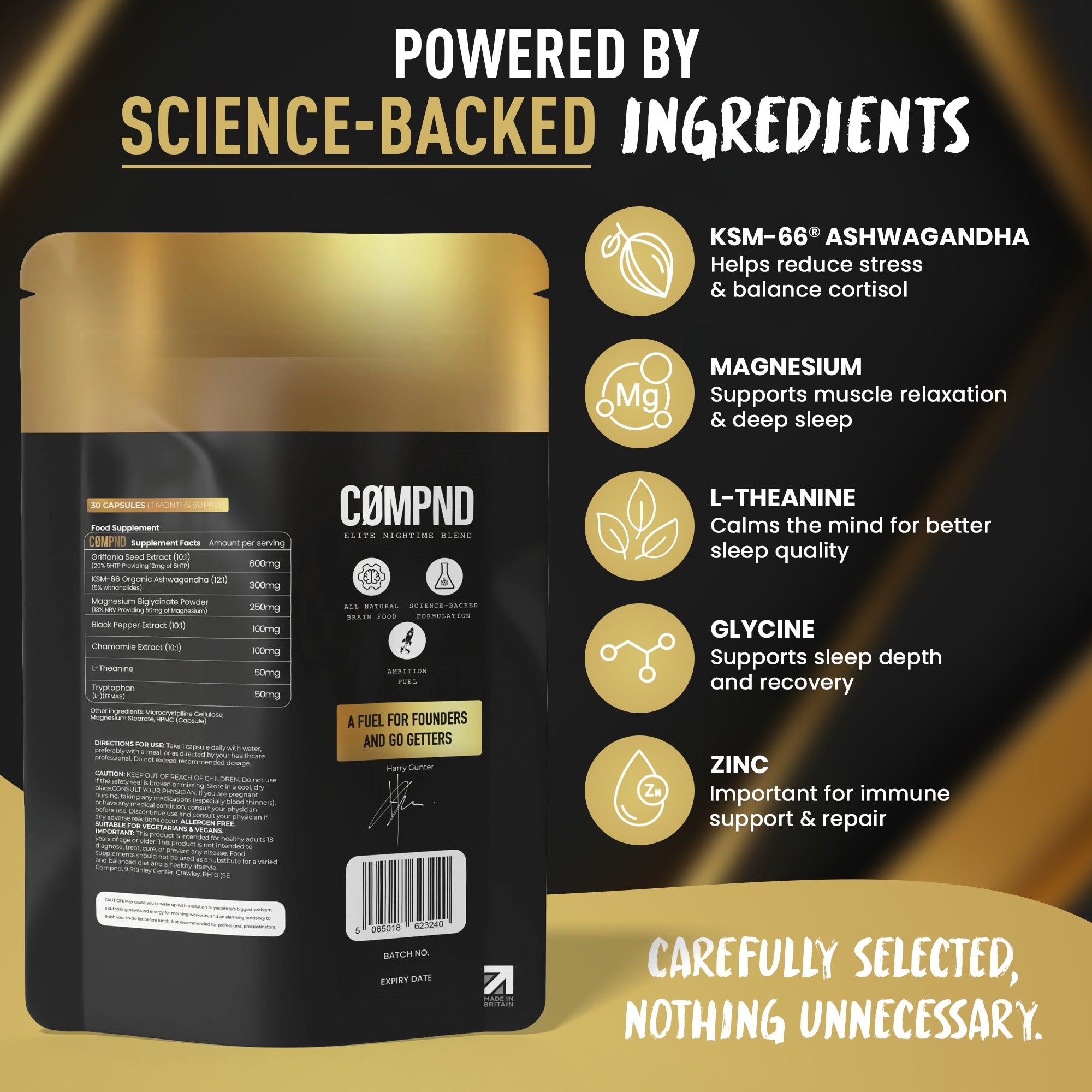 Elite Night Recovery Blend is expertly formulated to support your body's natural regeneration during sleep. This carefully balanced mix combines premium ingredients that promote restful, deep sleep and enhance recovery, helping to reduce fatigue and improve overall wellbeing. Ideal for those seeking to optimise overnight repair and wake refreshed, this blend complements a healthy nighttime routine with targeted nutrients for restorative rest.